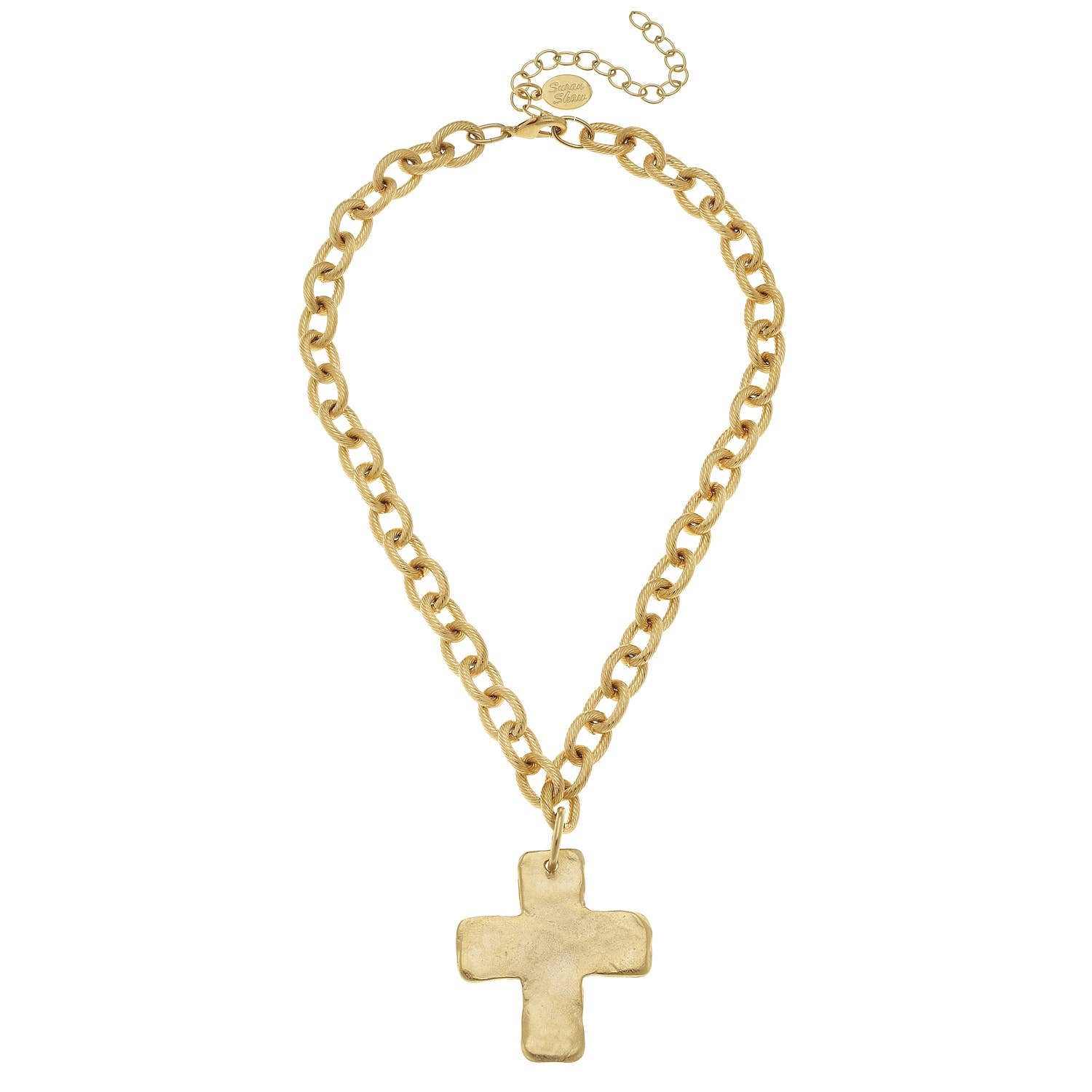 Elongated Cross Turquoise Necklace • 16 inches + 3 inch extender chain • Triple plated 24K gold, genuine turquoise •...