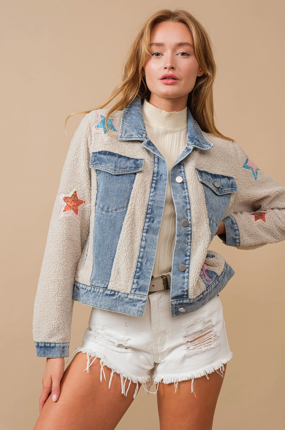 Teddy Denim Sequin Jacket