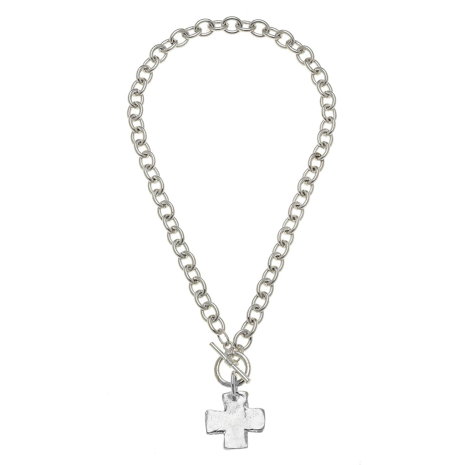 Indulge in the simple elegance of Susan Shaw's Sterling Silver Plated Cross Necklace. Crafted with care in our San Antonio...