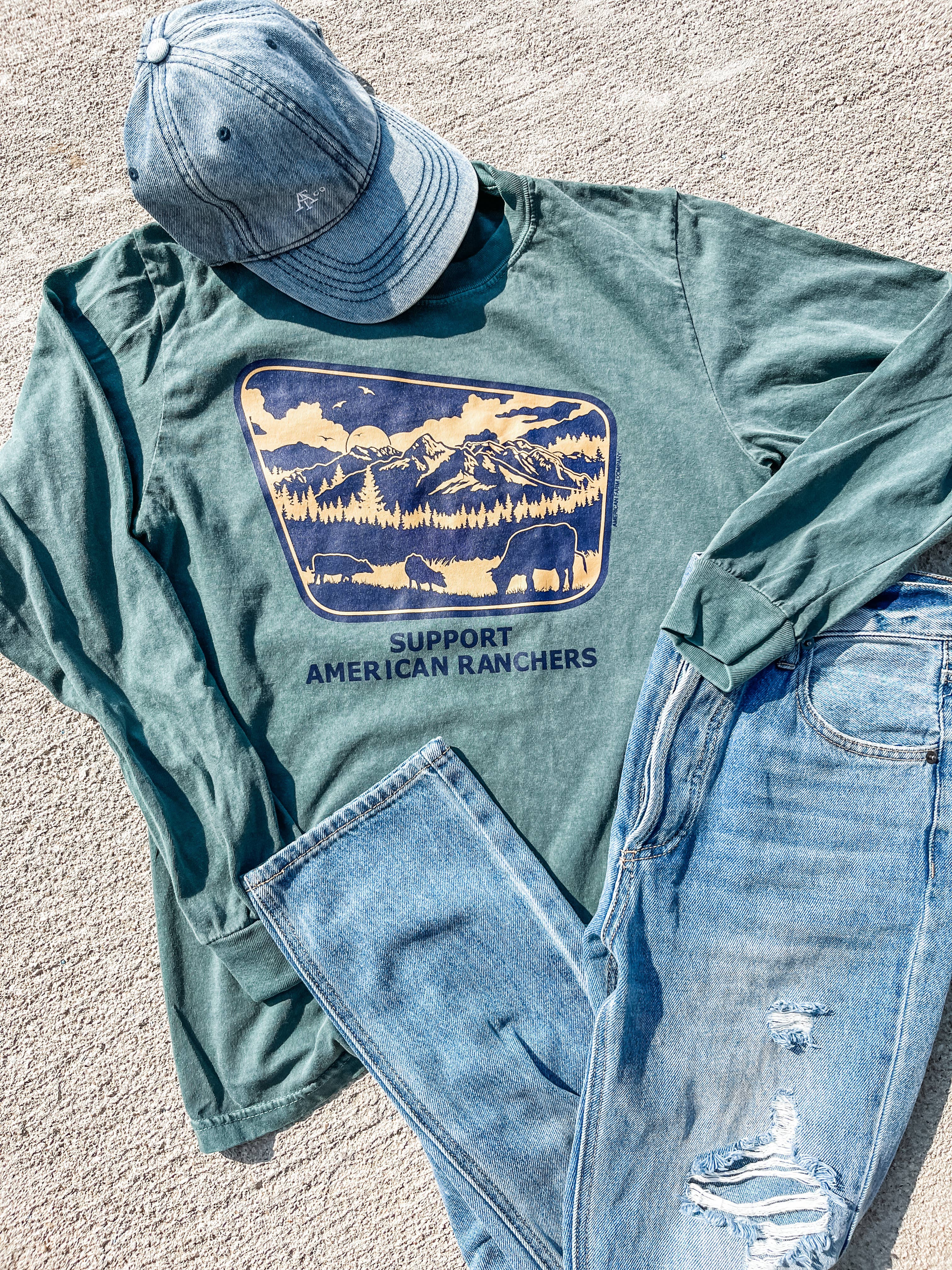 This Western 'Support Ranchers' long sleeve tee is made from 100% Comfort Colors cotton and offers a unisex fit that...
