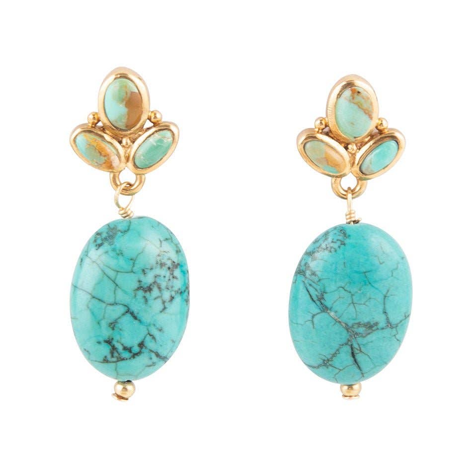 Barse Floral Turquoise and Sterling Silver Drop Earrings