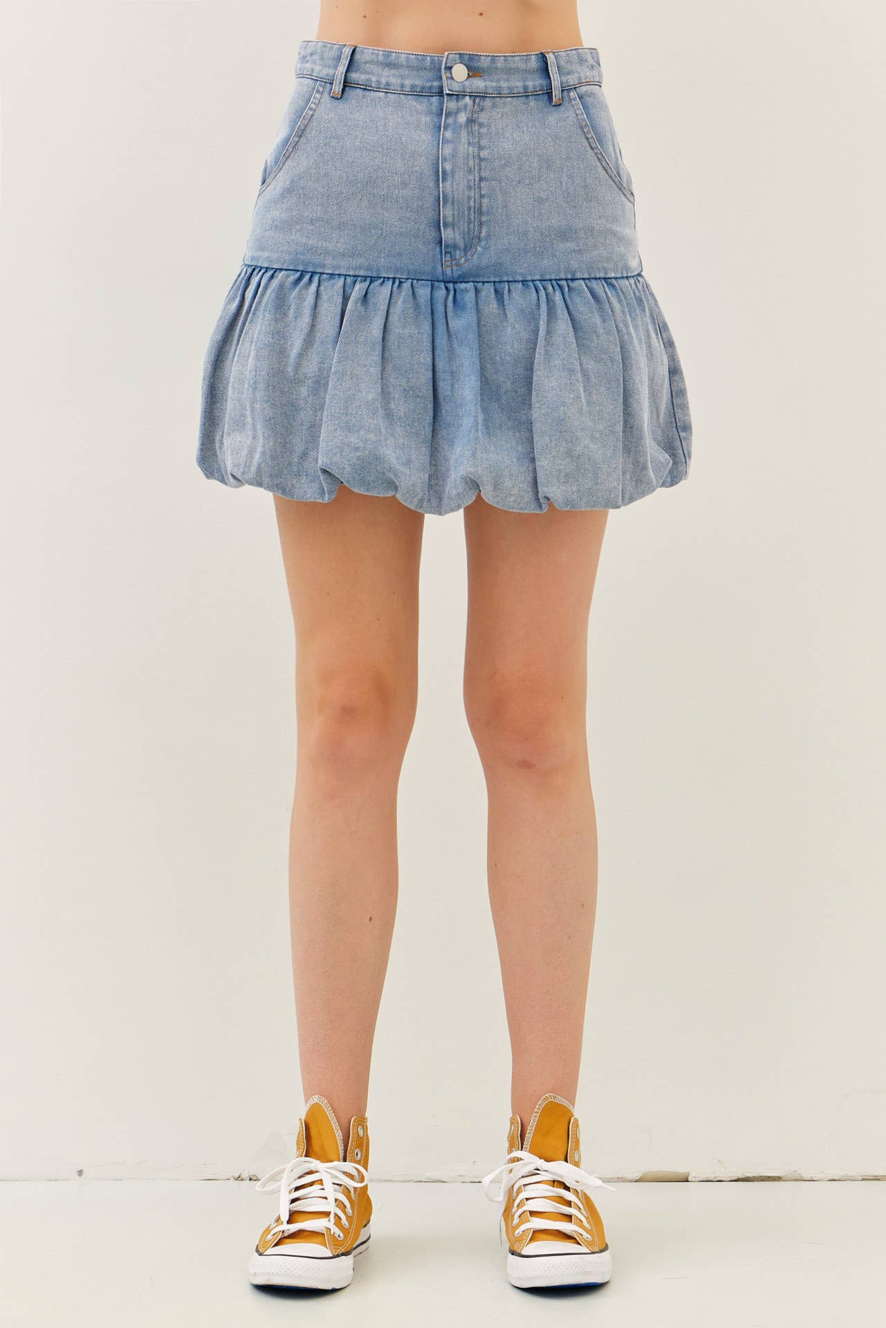 This playful mini skirt is crafted from soft, washed cotton denim and features a fun bubble silhouette. It comes with...