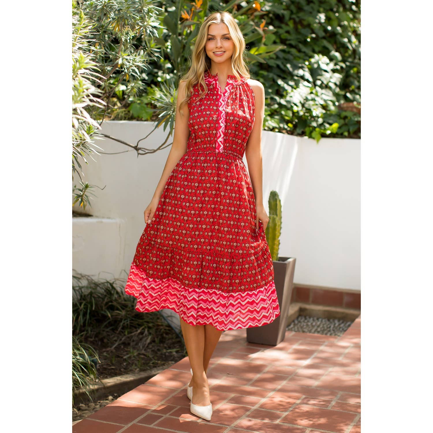 This Halter Button Up Print Maxi Dress is made from 100% cotton, bringing a fun and breezy vibe to your...