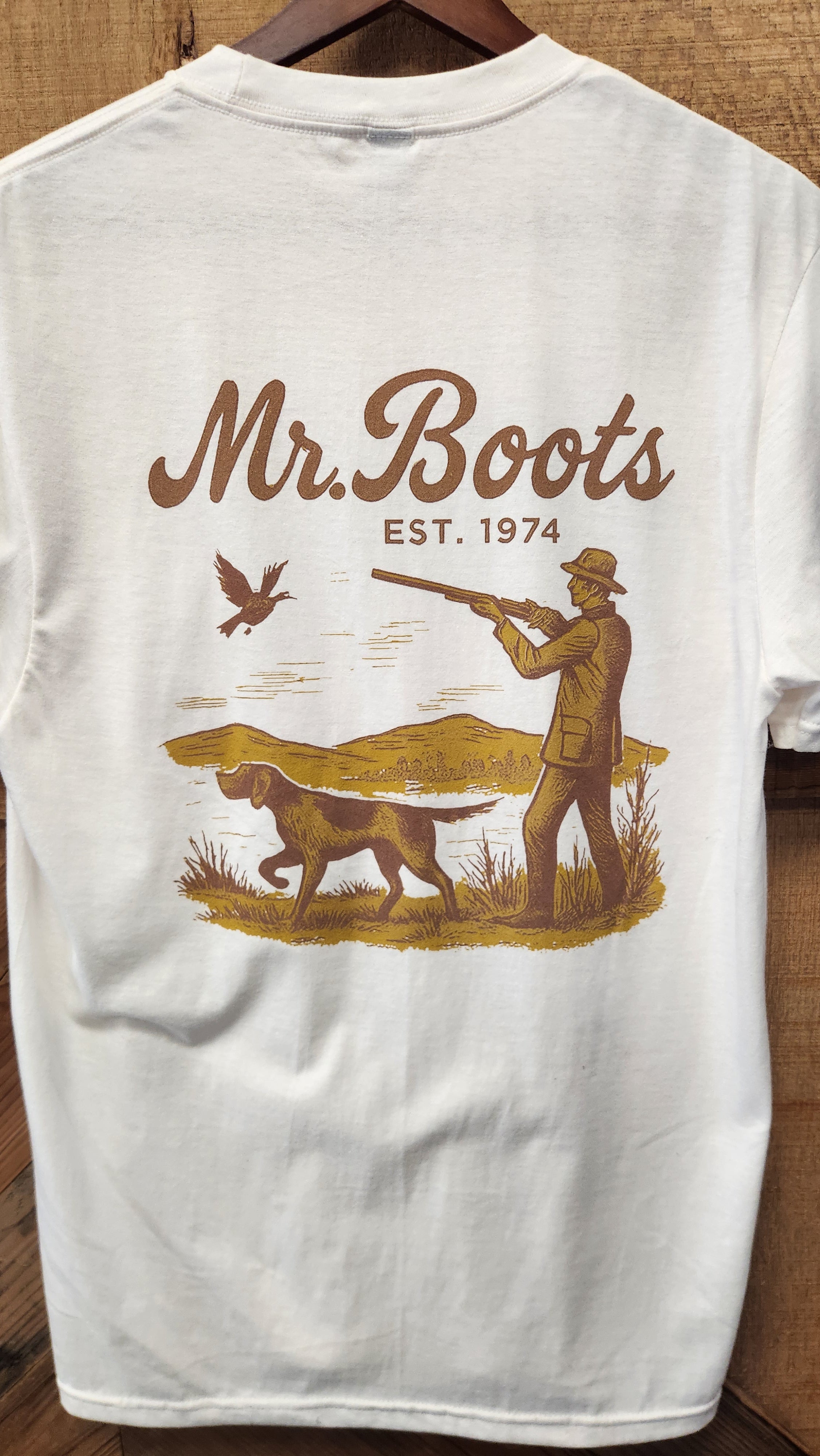 Mr. Boots Exclusive Bird Hunter Print on a DistRict 100% cotton tee.