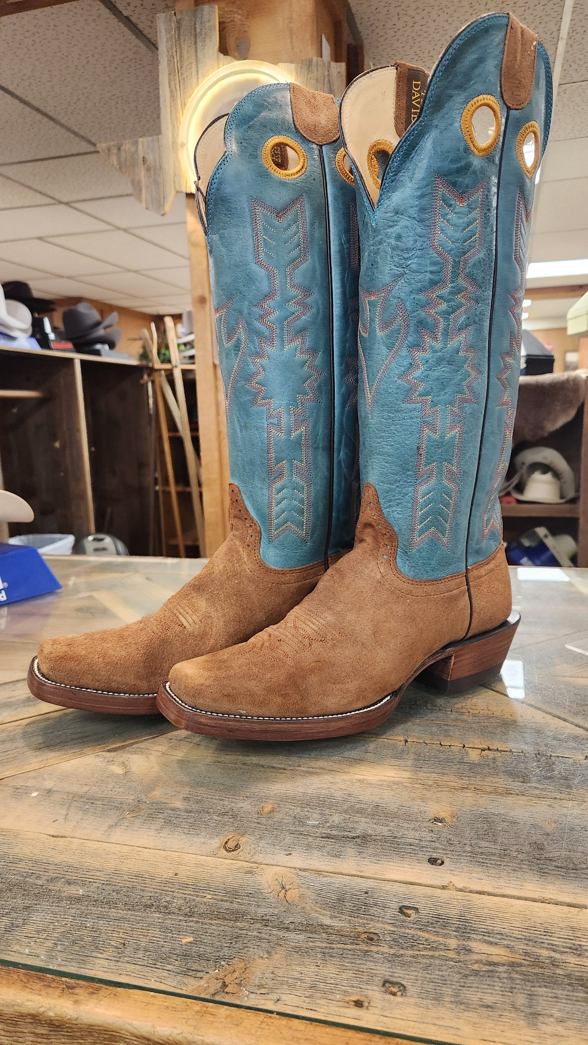 Vamp:Â Cognac Rancher Crazy Horse Top: David Blue Toe: Single Welt, Cutter Toe Heel: Riding Heel Sole: Leather