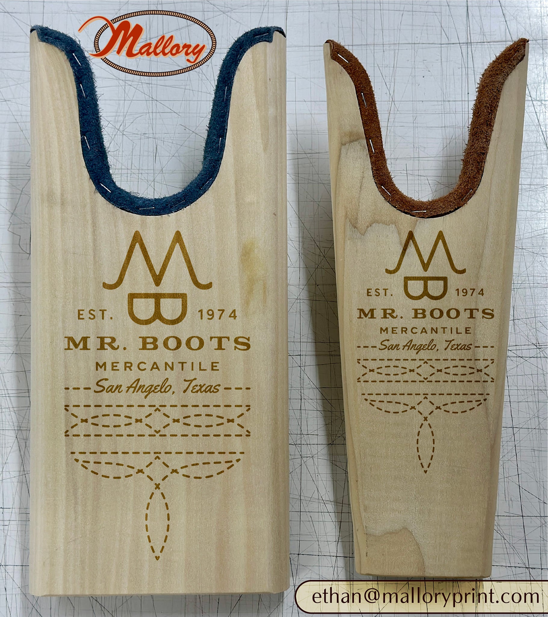 Model J wood, Mr. Boots laser engraved boot jack. Small