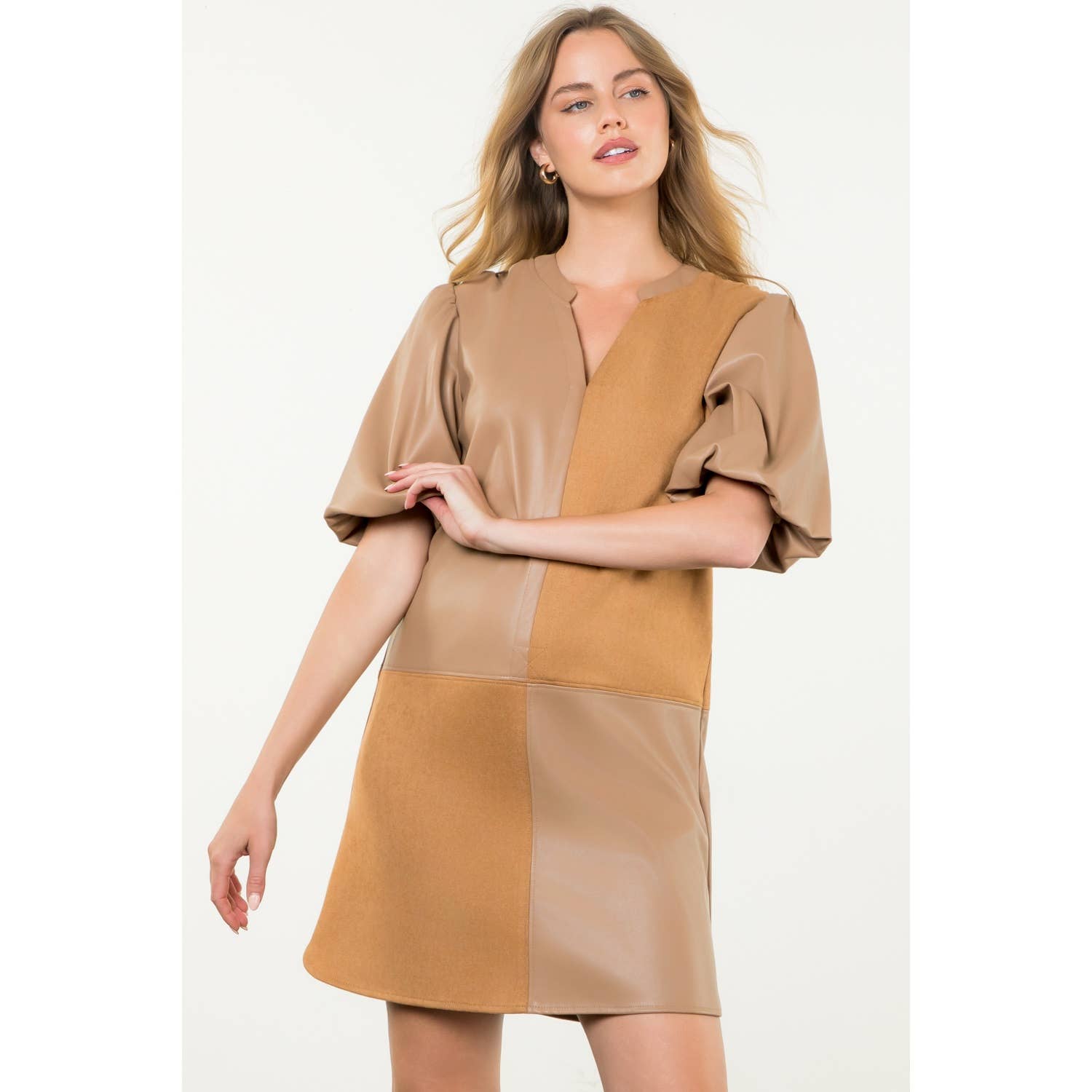 Mixed Media Puff Sleeve Dress