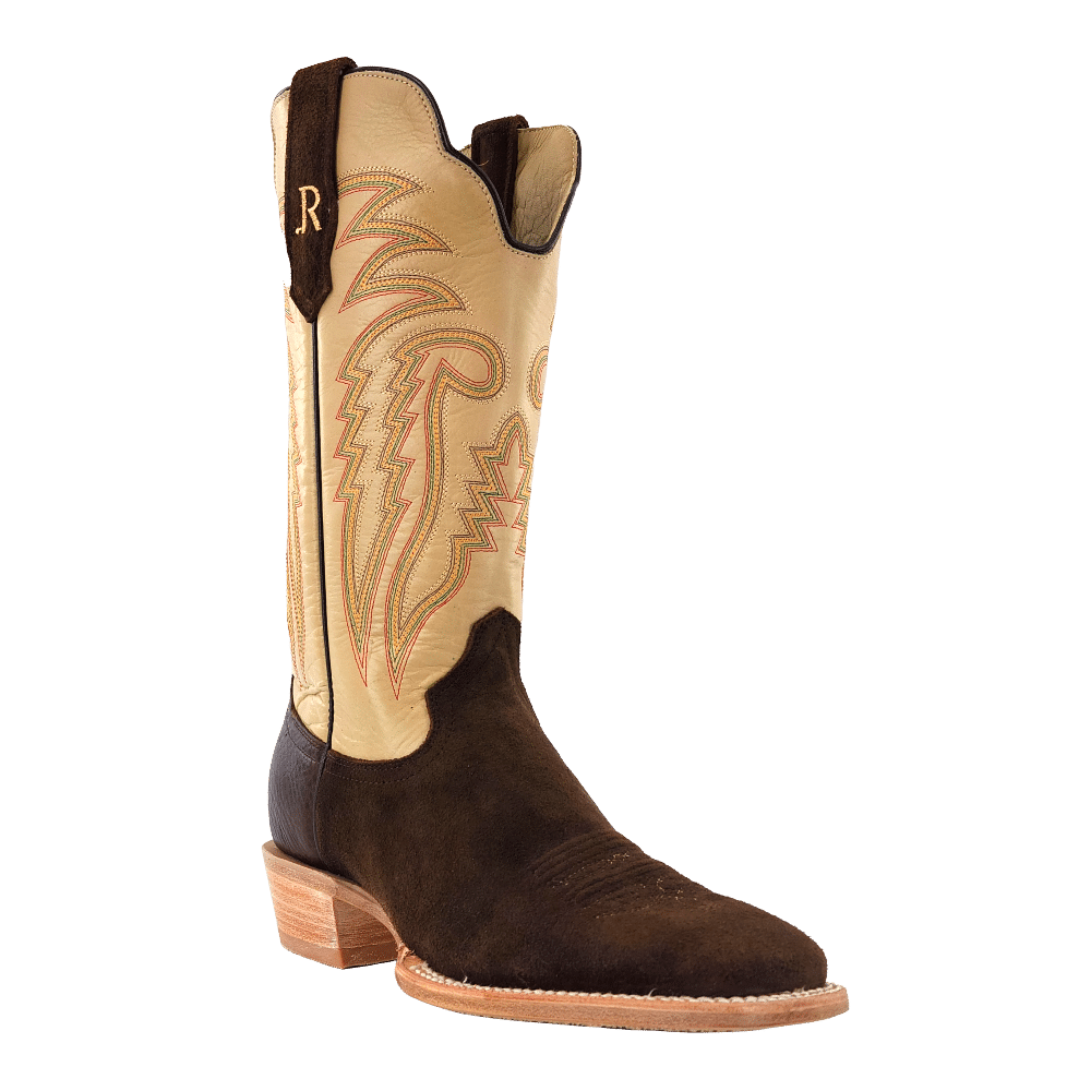 R. Watson presents these roughout and cowhide western boots. These boots have a 10 row stitch pattern, R. Watson comfort...