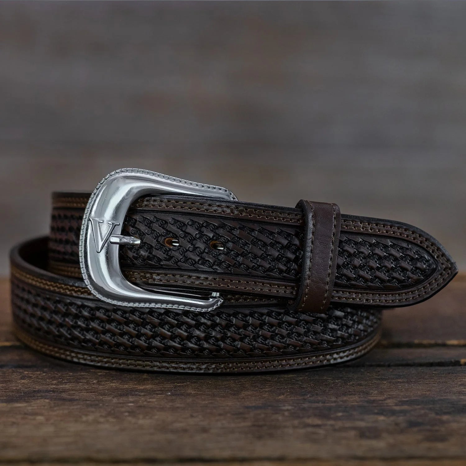 • Vogt Silversmith Chocolate Basket Weave Straight Belt