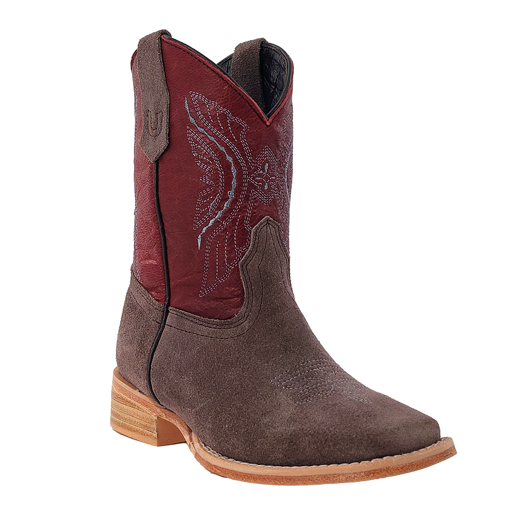 R. Watson presents these kids roughout and cowhide western boots. These boots have a 10 row stitch pattern, R. Watson...