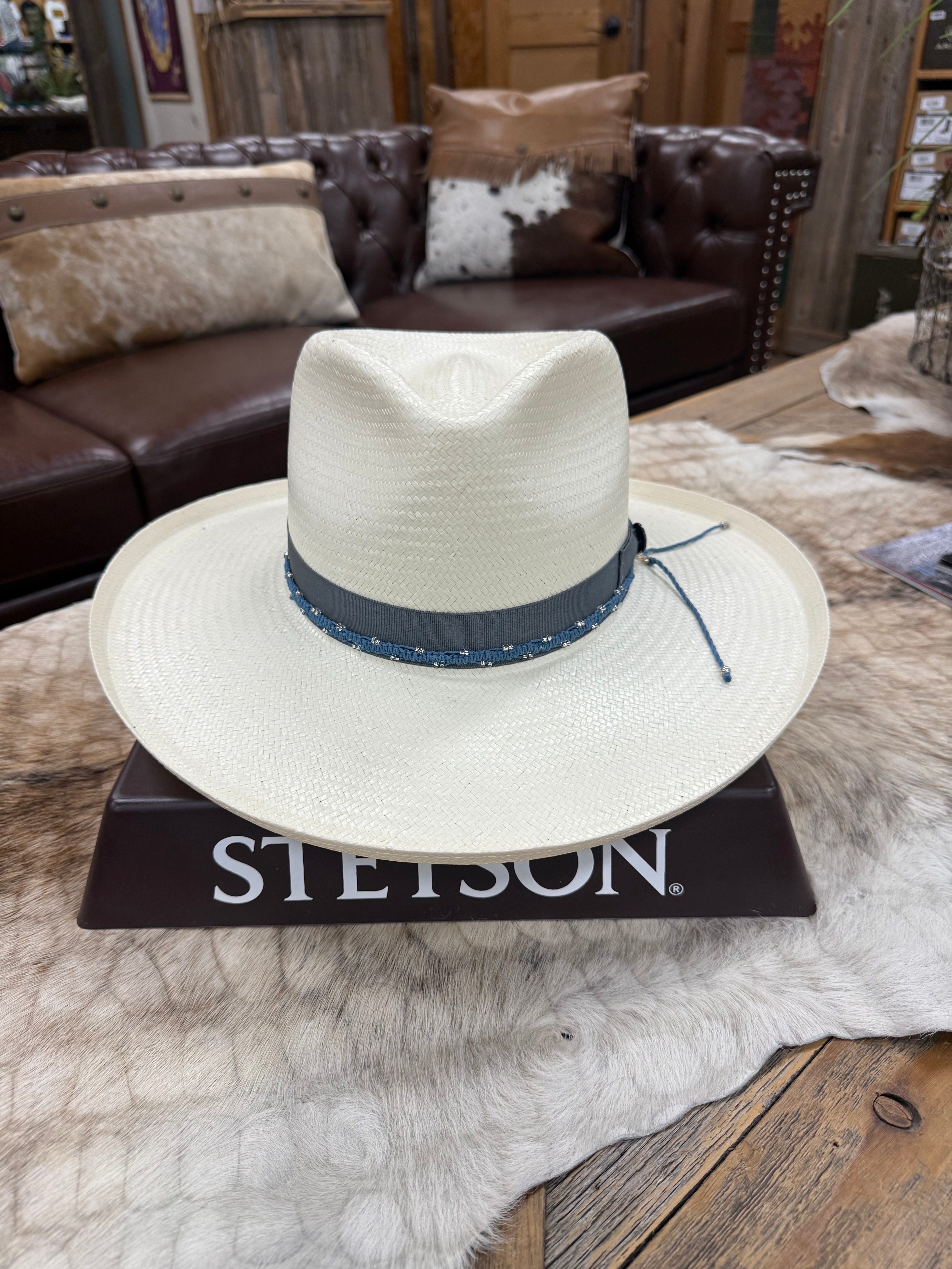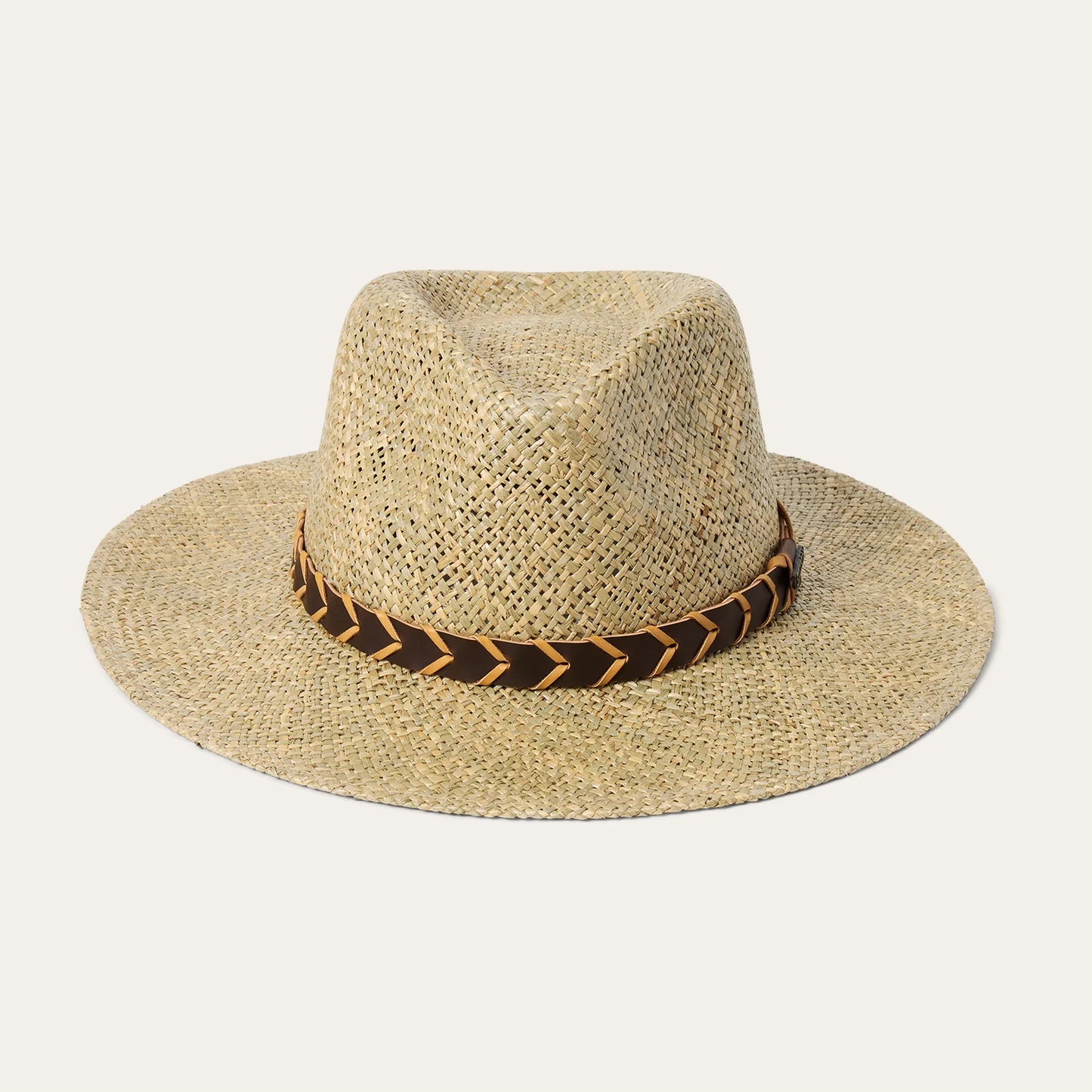 Crease: Tear Drop Brim Width: 4" Crown Height: 4-1/4" (creased) Hatband: tan leather stampede string (pictured) Sweatband: foam-padded cotton twill...
