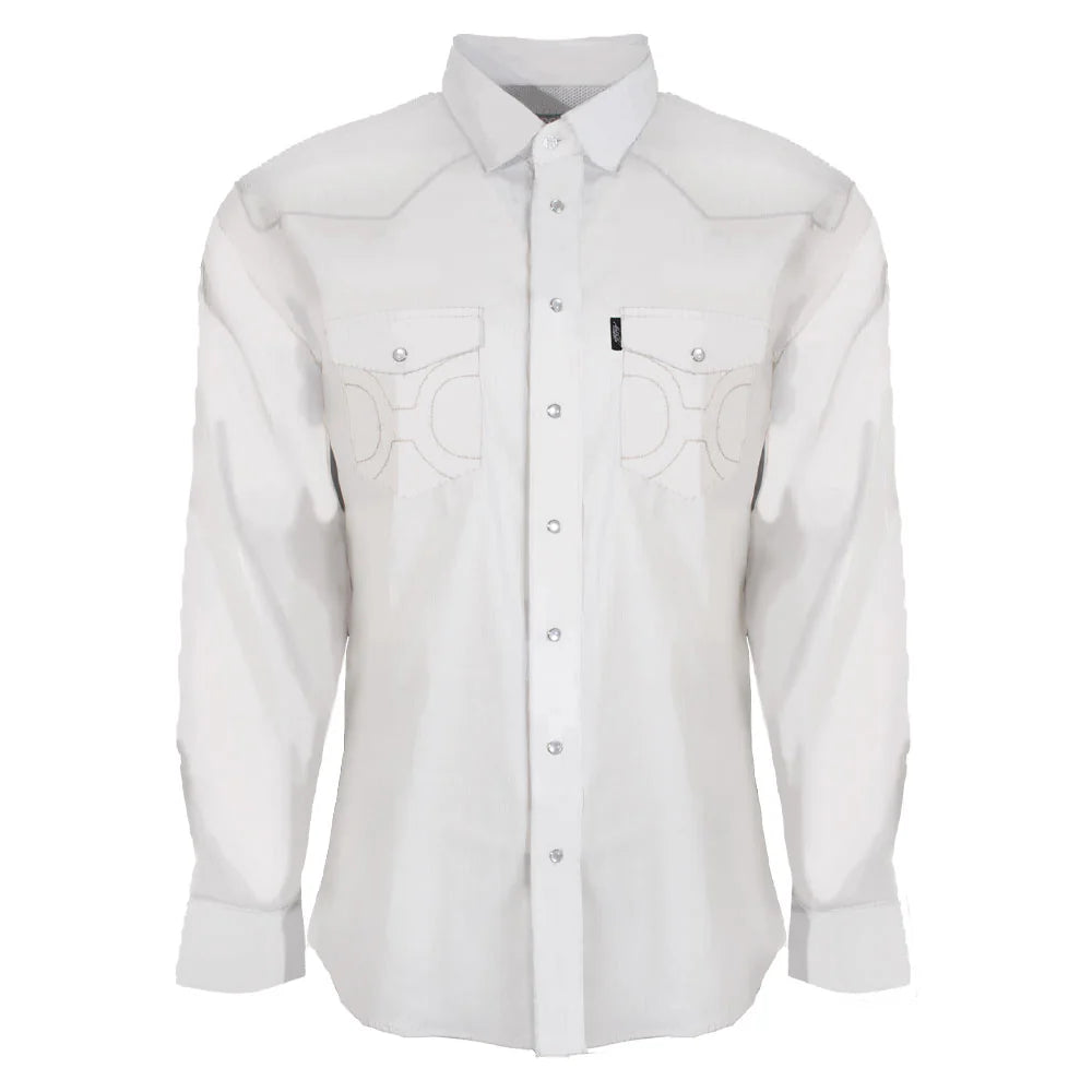 Hooey "Dos Sol" Long Sleeve Pearl Snap Shirt White
