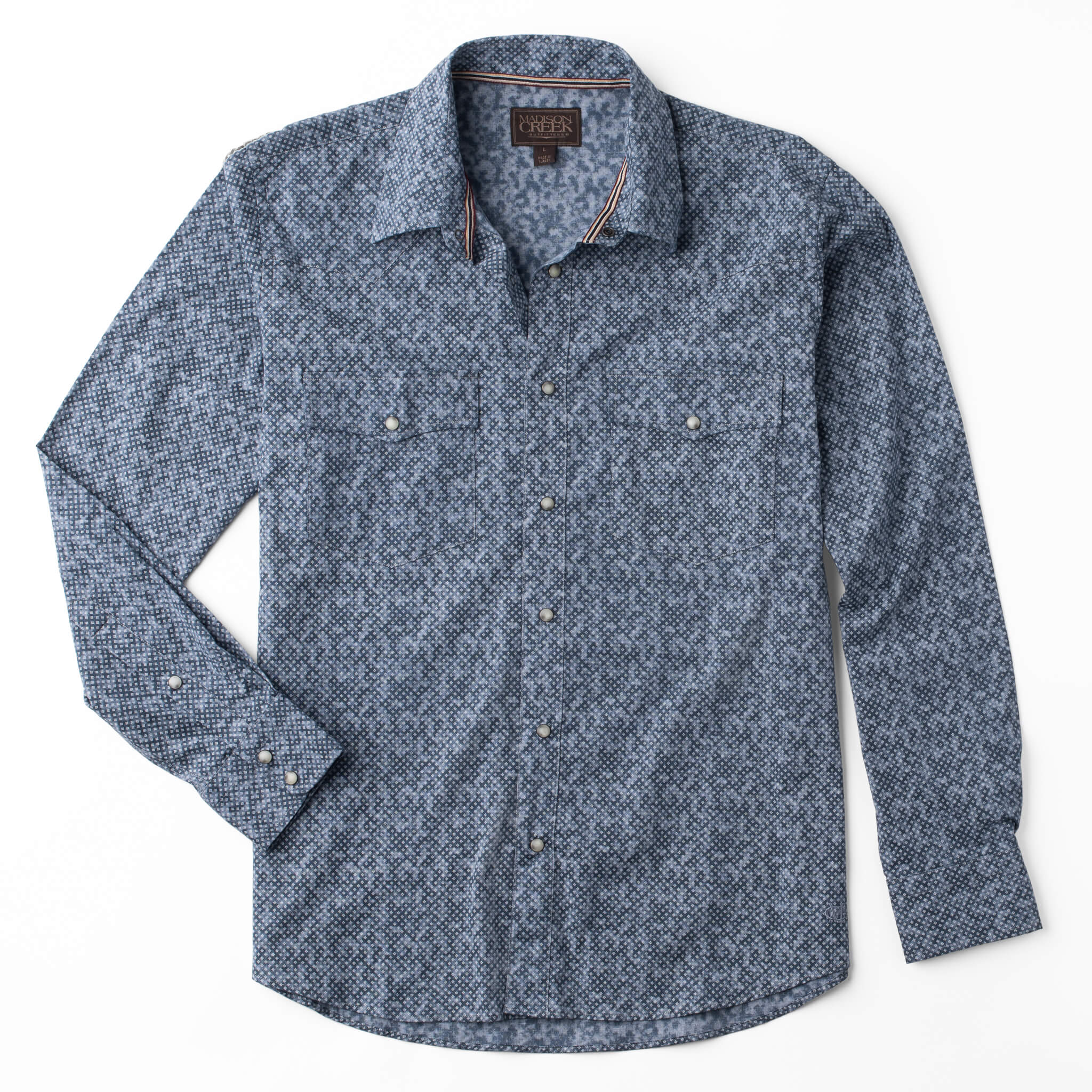 The Bisley Dot Print Shirt pays tribute to the American West, with a classic pearl and wood grain snap front...