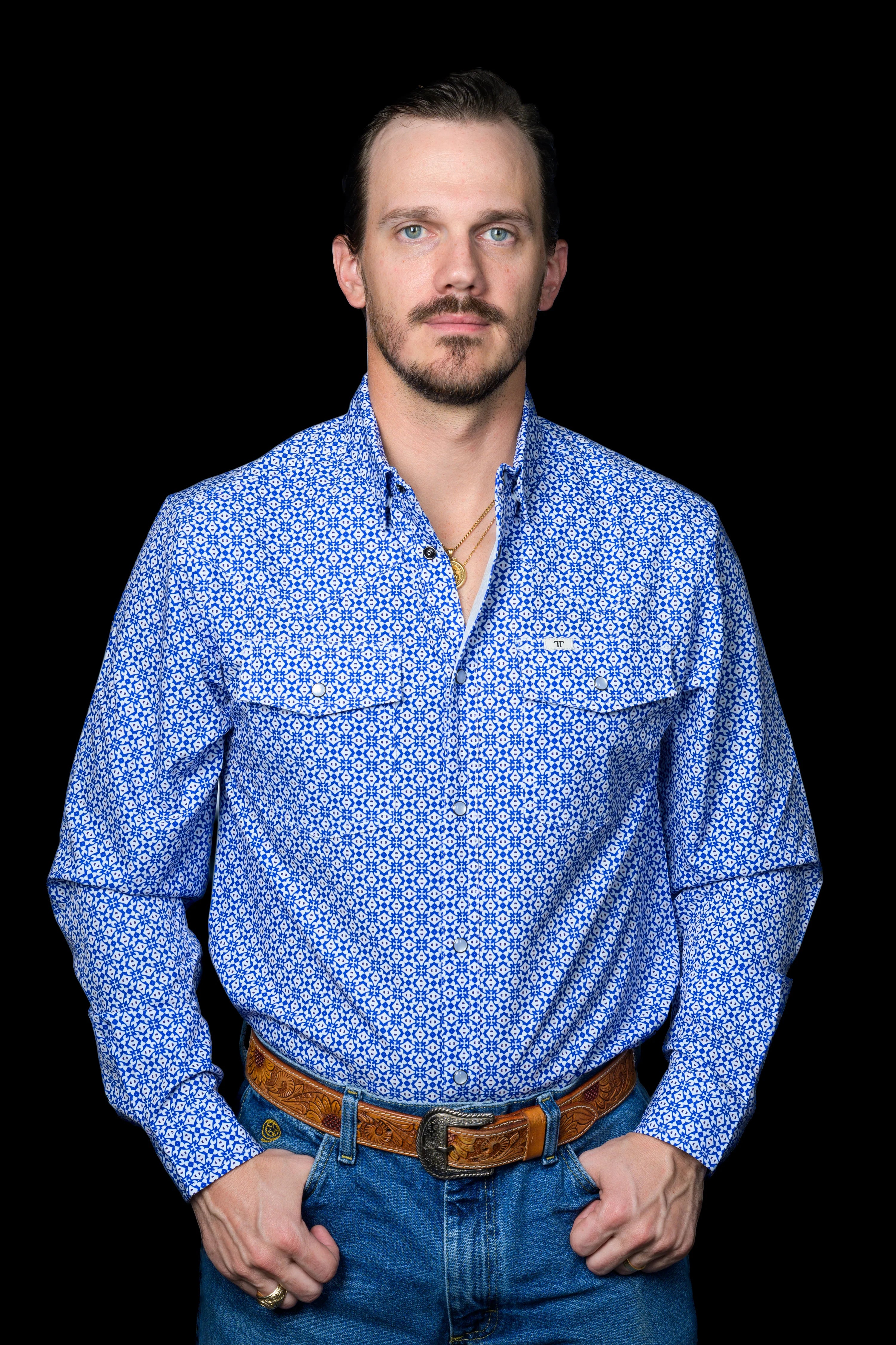 Ferrell Diamond Short Sleeve Snap Shirt Blue