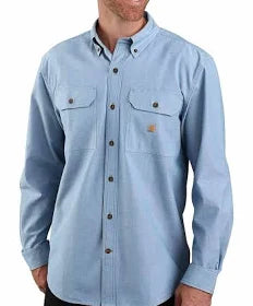 Description Appearance counts. From the front office to the jobsite and back, this chambray work shirt keeps you looking good...