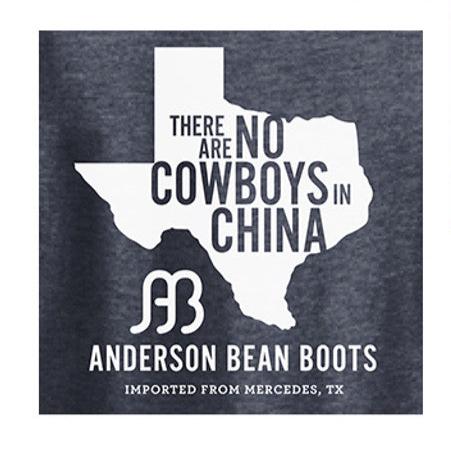 This Anderson Bean tee sports the Anderson logo on the front left and a cheeky No Cowboys in China design...
