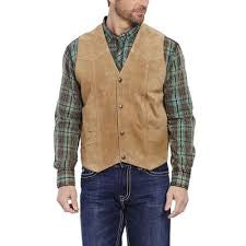 Men's Suede Leather Vest 100% Genuine Boar Suede Snap front closure Cripple Creek snaps Polyester lining Color: 24-Light Brown Material:...