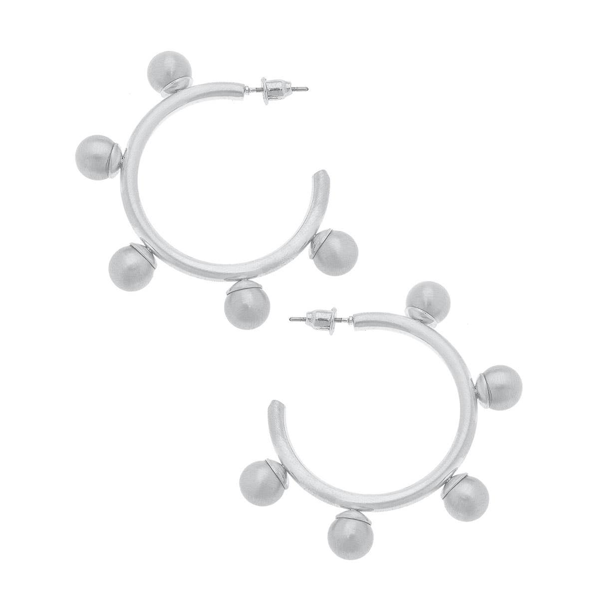 Style your outfit with our Allison Studded Metal Hoop Earrings in Satin Gold or Satin Silver. The classic design and...