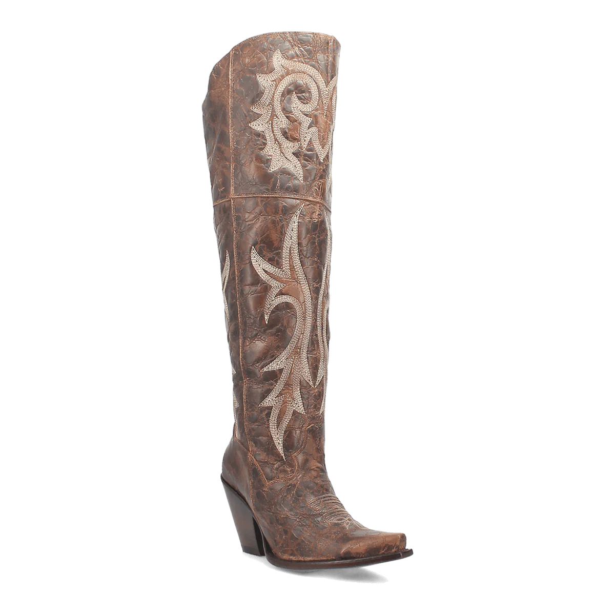 The Jilted boot is a show stopper with an over-the-knee, 20 height. Handcrafted with soft, distressed leather and western stitching...