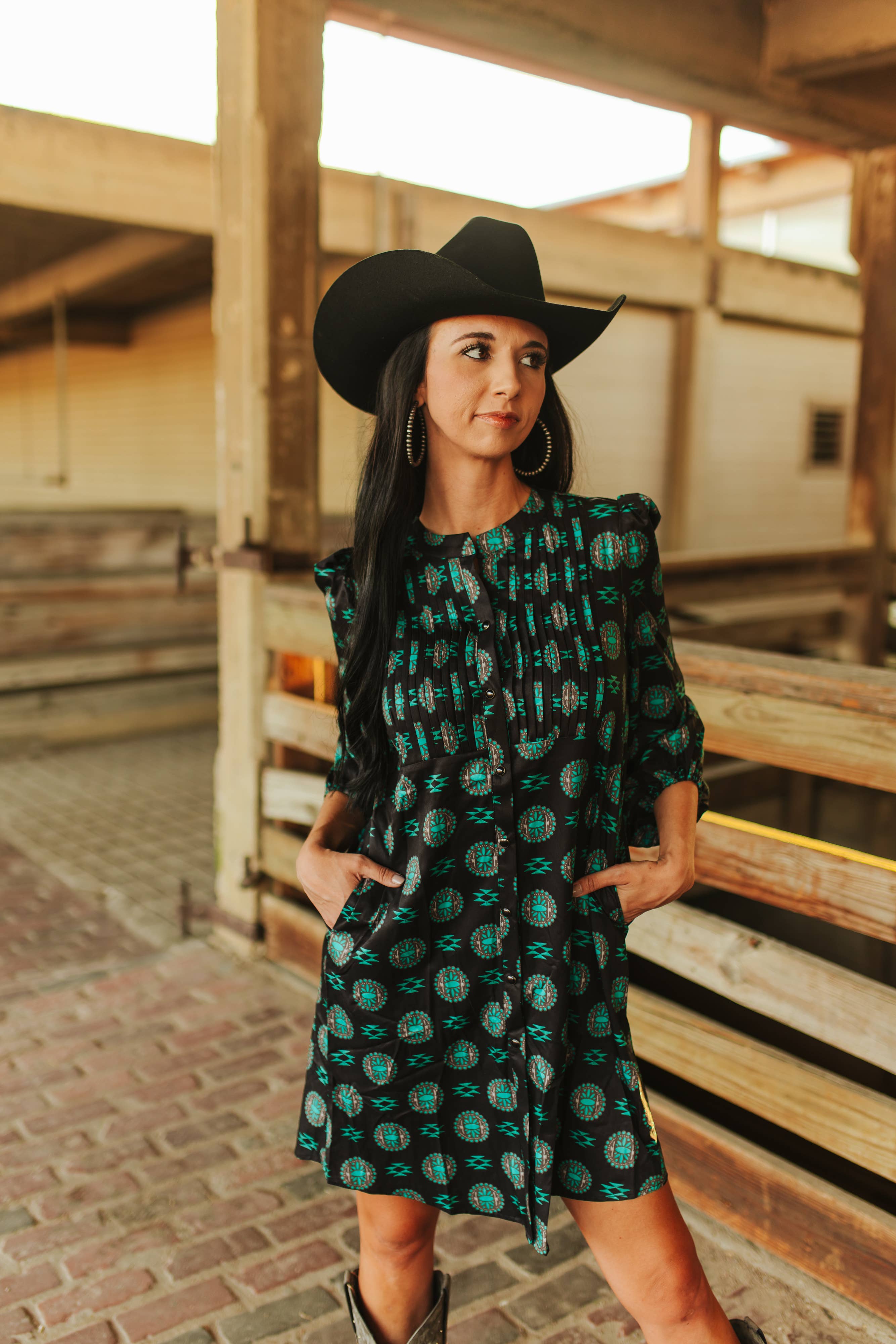 Unleash your inner cowgirl with our Western Boot Print Shirt Dress, a playful and stylish addition to your wardrobe. This...