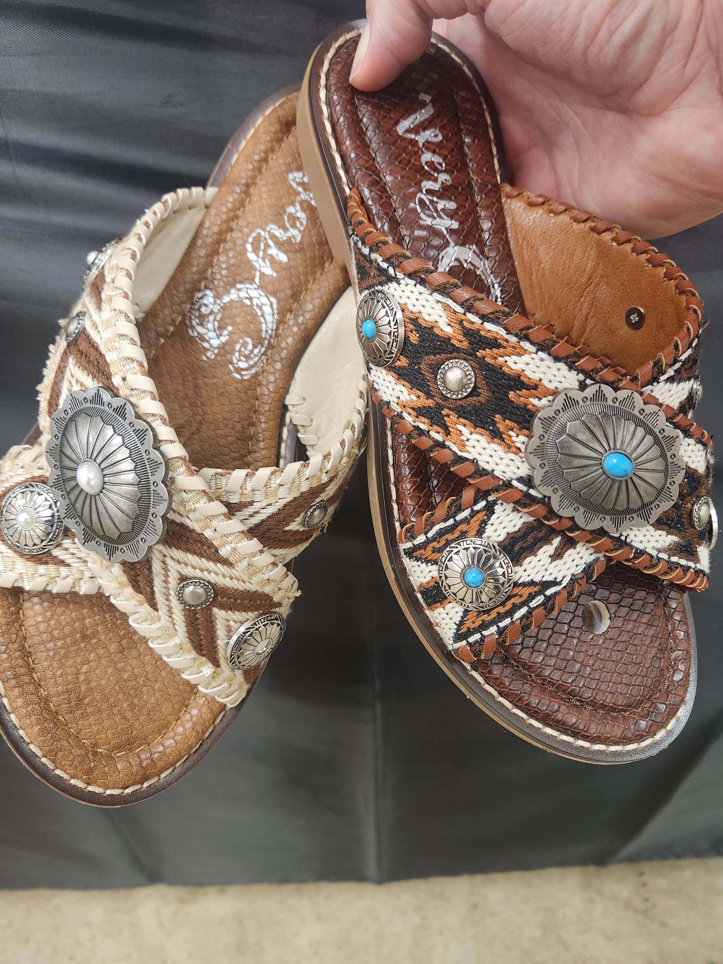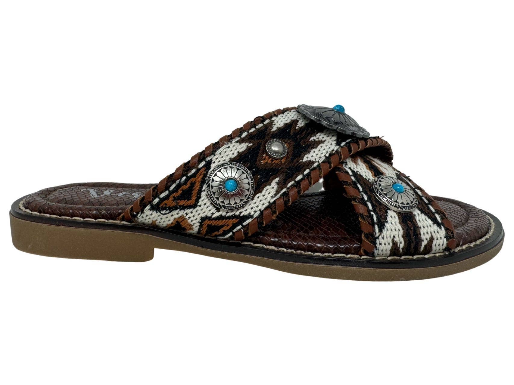 Jungle- Very G Women's Western Slip on Sandal with Turquoise or Silver accent details, cushioned footbed.