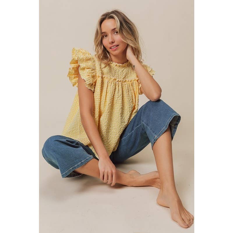CRINKLE GINGHAM LAYERED RUFFLE SLEEVE TOP