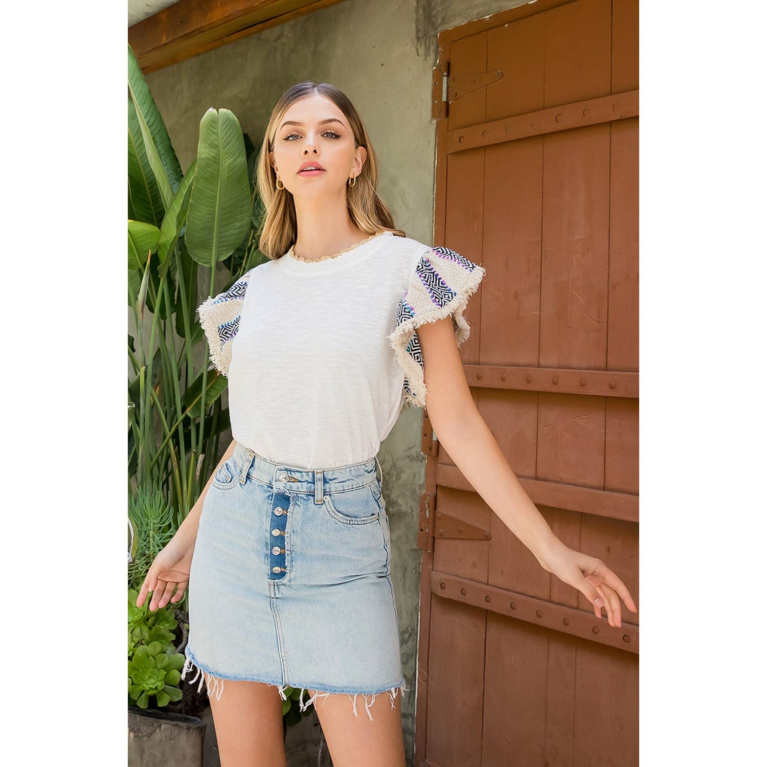 This Flutter Sleeve Knit Top is made from a soft knit blend of 95% cotton and 5% acrylic, perfect for...