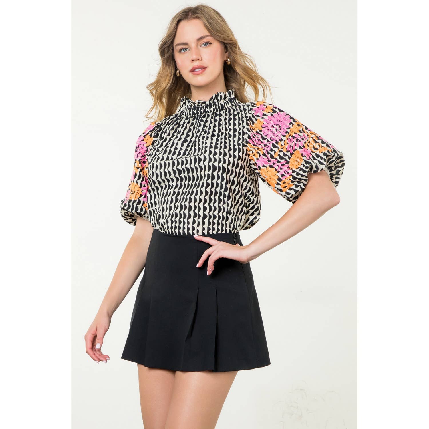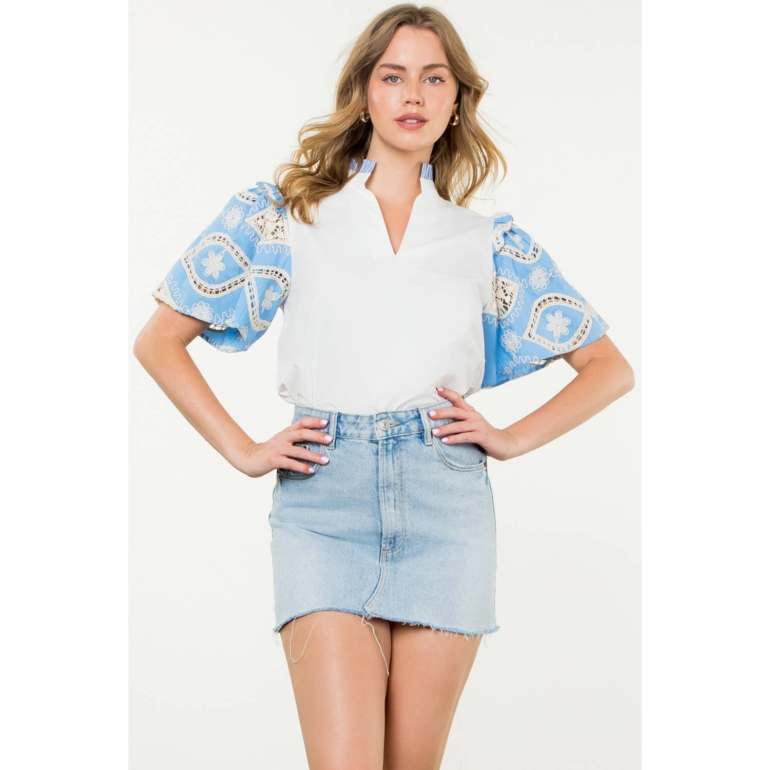 This Embroidered Puff Sleeve Print Top is crafted from 100% cotton woven fabric, adding a fun and fresh flair to...