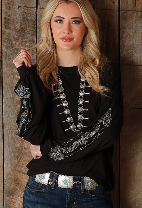 Boot Stitch Embroidered Long Sleeve Sweater Knit Top
