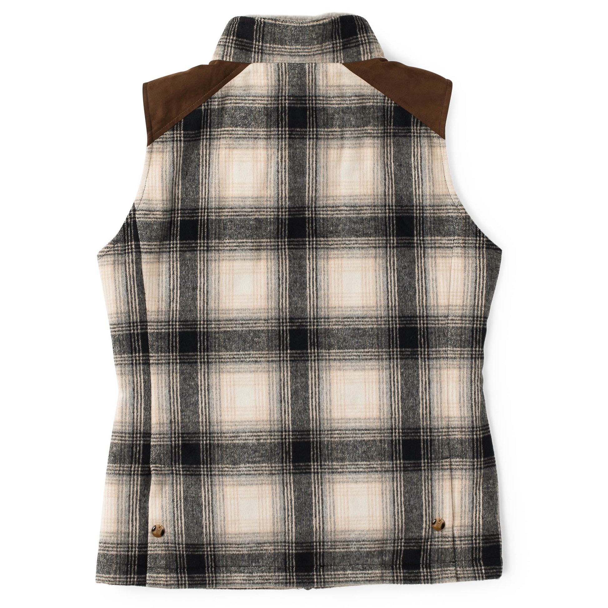 The rich charcoal plaid gives this vest its timeless appeal, while thoughtful details like microsuede trim on the shoulders and pockets, a concealed snap placket over a two-way zip front, and a back vent with snap closure add both form and function. From chilly morning errands to fireside evenings, the Cashiers delivers comfort and timeless style in every stitch.