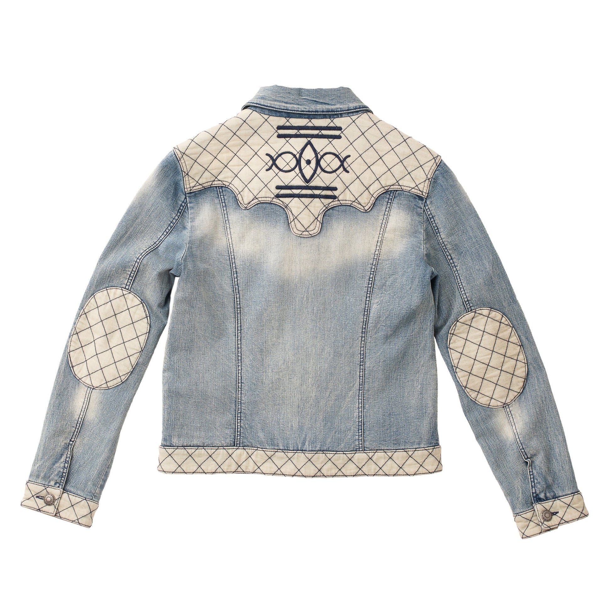 The Faith Denim Jacket offers a fresh twist on a timeless Western classic. Featuring soft-washed denim accented with contrast cream panels in a quilted grid pattern, this jacket blends everyday style with unique detailing. Thoughtfully designed embroidery, paisley print lining, and classic snap-front styling make it a standout layer for casual days or dressed-up evenings.