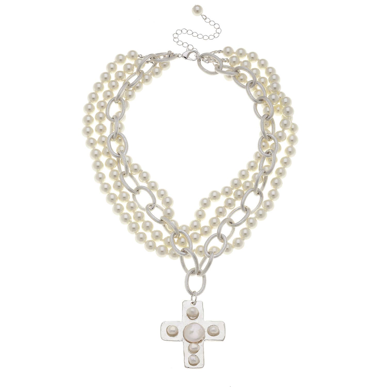 Susan Shaw Silver Cross with Freshwater and Coin Pearls Necklace